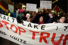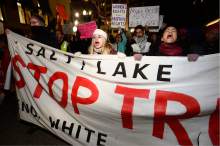That request, from a young woman, rang out over the microphone at a rally in downtown Salt Lake City attended by about 1,000 people gathered to protest President Donald Trump hours after he was sworn in Friday.