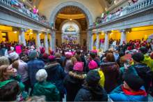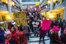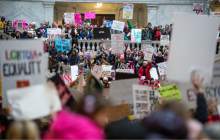 During the rally in the Rotunda, event organizer Kate Kelly said she had recently returned from Saturday's women's march in Washington, D.C. She had not slept in four days and had caught a cold, she said, and was feeling sick and tired, both literally and figuratively.
