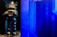A classic movie robot on display at The Leonardo's new exhibit "Alien Worlds and Andro
