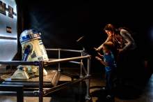 Natalie and Seth Ockey interact with R2D2 at The Leonardo's new exhibit "Alien Worlds