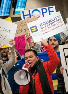 While there were no reports of detentions in Salt Lake City before the order was temporarily halted, several in the crowd said they came to show their opposition to the executive order.