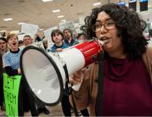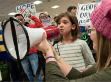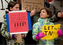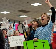 The youngest in a stream of people to tell stories through a megaphone at the center of a circle of supporters was Millie Kraatz, 8, of Salt Lake City, who told the crowd she was scared. "I don't think it's fair to not let them in just because they're different," Kraatz said while standing next to her 10-year-old sister.