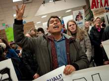 Ella Mendoza, an undocumented immigrant from Peru, said she walked through the same airport halls when she came to Utah 14 years ago. "My message is here," Mendoza said. "No wall. No ban."