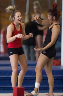 University of Utah gymnast MyKayla Skinner, right, laughs with teammate Kari Lee during practice at Dumke gymnastics practice facility on the campus of the University of Utah Salt Lake City Thursday January 5, 2017.