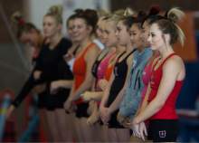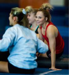 University of Utah gymnast MyKayla Skinner, right, during practice at Dumke gymnastics prac