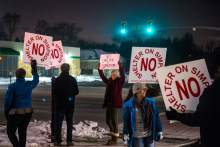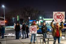 Dozens of bundled-up protesters met attendees near the front door and asked them to "Save Simpson," an ever-present reminder of the challenges Biskupski faces in her second year.