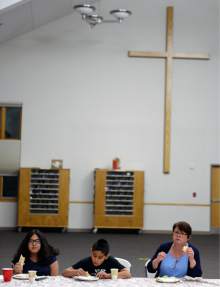 The Tinajeros became "guests" as they are called for the week at Sandy's Good Shepherd Lutheran Church. Tucked amid biblical posters and a sign with "God" spelled out in giant letters, they bed down on donated mattresses and scrupulously laundered linens. Guests without their own sleeping bags are provided blankets and comforters.