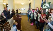 Supporters there also repeated an old 1970s chant, "Ho ho. Hey hey. Ratify the ERA."