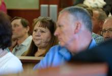 Janice Rowberry expresses her anger over losing 100,000 of her retirement when he invested with admitted fraudster Dee Randall, at right, as she speaks at the Matheson Courthouse during sentencing by 3rd District Judge Mark Kouris on Monday, Feb. 6, 2017. Randall pleaded guilty in July of last year to five charges related to his operation of a Ponzi scheme that took in more than $72 million from about 700 people.