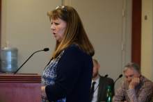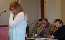 Sarah Bradshaw, daughter of admitted fraudster Dee Randall, in background, speaks in support of her father as the Kaysville insurance agent, appears at the Matheson Courthouse for sentencing by 3rd District Judge Mark Kouris on Monday, Feb. 6, 2017. Randall pleaded guilty in July of last year to five charges related to his operation of a Ponzi scheme that took in more than $72 million from about 700 people.