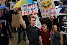 A film crew followed the Browns on Friday as they arrived at City Creek Park before leading about 100 people polygamists, their children and supporters up State Street to the Capitol.