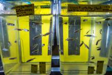 At 5 days old, zebrafish are just tiny black specks barely visible through squinted eyes pressed close to their plastic container of a home.