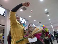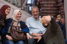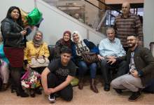 l-r The Alsaadi family takes photographs of the arrival of Nisreen Alsaadi and her son Zaid