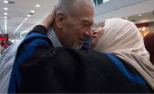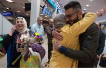 l-r Nisreen Alsaadi kisses her brother, Qays Eabd Aljalil upon seeing each other for the f