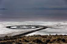 The sculpture was made in 1970 by Robert Smithson. It is a 1,500-foot-long, 15-foot-wide counterclockwise coil jutting from the shore somewhat near the Golden Spike National Historic Site.
