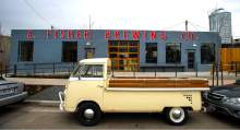 Formerly an auto and paint shop, the Fisher Brewing building has been renovated to accommodate brewing and cold storage; its open layout allows customers to enjoy a beer at one of the long wood tables while getting a front-row seat to the brewing process. No doubt many will try to determine as an old Fisher sign says if the beer is still "sparkle brewed with altitude."