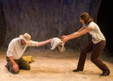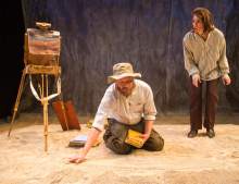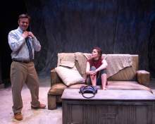 The third play, "Veteran in a New Field," is the most metaphorical, counterpointing images of blindness and seeing. Michelle (Ariana Broumas Farber) is a veteran with PTSD who "see[s] things that aren't there," while John (Lane Richins), a blind painter, has exchanged sight for insight. The title comes from a Winslow Homer painting John uses for inspiration, but both characters are veterans in a new field. John comforts Michelle with the observation, "Sometimes … you get to begin again. … You get to live … on a whole different level. … You exist in your own contradiction. … The pain allows you to heal." Farber vacillates effectively from agitation and bitterness to pride and understanding, and Richins is philosophical without getting heavy-handed.