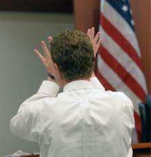 Imprisoned St. George businessman Jeremy Johnson, wearing a white shirt, tie and handcuffs, refused to testify in the public-corruption trial even after obtaining a promise of immunity.