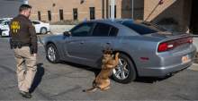 The Utah Department of Public Safety demonstrated how it has discovered many of the drugs being transported across the state's highways. Agents wedged a piece of paper with narcotics on it between a door on a car and brought out Bear.