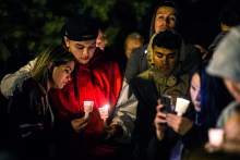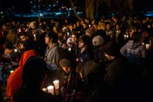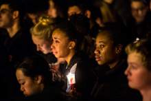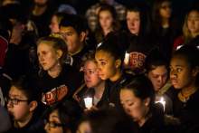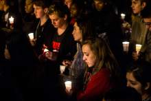 Students, family, friends and community members gather for a candlelight vigil Friday Febr