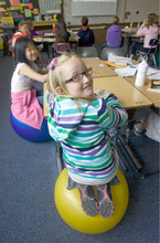 Fourth-grader Jessica Marttila, who sits on a green ball, said she was eager to try a ball ever since she walked past Dyer's classroom a couple of years ago.