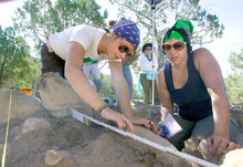 Training archaeologists • For the past eight summers, Metcalfe has brought a dozen undergraduate anthropology majors to Range Creek for three 10-day field sessions. Under the guidance of graduate students, participants conduct archaeological surveys and excavate trenches into suspected Fremont structures, meticulously removing the dirt one stratum at a time.