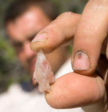 In fact, Range Creek has not yielded many intact artifacts. The handful of impressive ones that have been found include 11 figurines discovered in 1950 by rancher Clarence Pilling. More recently, priceless relics have been found cached in cracks in the sandstone: a wooden flute, a strange paddle-like object, a bundle of arrow shafts and a bundle of snares.