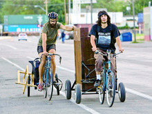 "A lot of people really like it," Rich said. "It's something they don't ordinarily see, and it takes them by surprise. We take a lot of space on the road. Generally when that happens when you're biking, people yell at you or honk and get mad." The novelty of their transport seems to excuse them from most drivers' road rage.