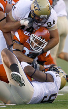 The sophomore getting his first start never had time to get comfortable with Pitt's line proving no match for Utah's defenders. He finished 16 of 28 for 184 yards and a touchdown, but was sacked twice and didn't find his rhythm until the end of the game when Pitt rallied to force overtime.
