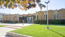 The new three-story administration building will be built to the south, attaching to the new single-story library by shared auditorium/meeting space in between.