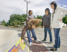 For months, Jimmy Lucero worked with a group of teenage girls to help them complete a series of tile images that sparkle like ornaments on a 600 W. 200 North roundabout in Salt Lake City.