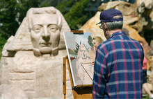 The best-known sculpture in the garden is an Egyptian sphinx with the face of LDS Church founder Joseph Smith. Another sculpture is Child's interpretation of an ancient sacrificial altar described by Smith, while another represents several verses from the Book of Ecclesiastes in the Bible.