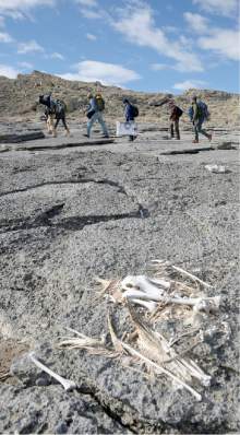 Another world • Three Department of Natural Resources boats took the team from the Great Salt Lake Marina to the island, a two-hour journey that passed though the new breach in the Union Pacific causeway separating the northern Gunnison Bay from the rest of the lake.