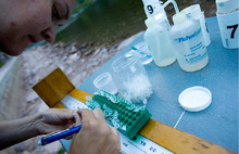 "It is essentially a stomach content analysis to see what the fish have been eating," said Scott Miller, director of the Bug Lab, as he stuck a tube down a trout's mouth and pumped water to flush its stomach.