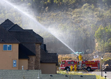 On Monday evening in Rose Canyon, firefighters from Lehi, Sandy and the Unified Fire Authority were in burned areas trying to ensure smoldering brush and logs didn't reignite.