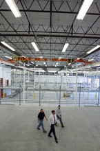 The Jordan River Service Center, near 2200 South and 900 West, will employ 200 people and has seven light-rail tracks running into the building. It is undergoing a $40 million renovation, $24.6 million of which was provided through federal stimulus funds.