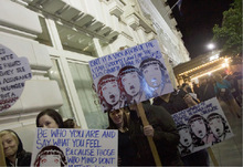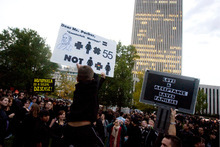 On Thursday, protest organizers estimated that 4,500 people ringed the two downtown blocks that make up the LDS Church's headquarters. Participants wore black, and some carried signs. Lying head to toe or sitting shoulder to shoulder, they encircled Temple Square two times.