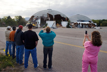 Saying goodbye • TinaMarie Gardner, a Cinedome 70 fan who now lives in Albuquerque, N.M., recently accompanied Mark Tullis and his mother, Nancy Tullis, and others on a farewell walk through the once-grand place.