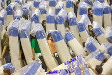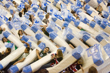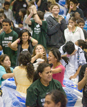 "I think it's so much fun to pull this off," said student government president Roxana Martinez, who fell backward on a mattress to start the chain reaction that fanned out across the gym. "I can't believe we did it."