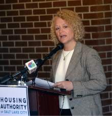 Palmer DePaulis, chairman of the Housing Authority of Salt Lake City board of commissioners, was among speakers present at the ribbon-cutting ceremony.