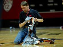 The Utes showed early signs of that motivation, however, climbing out to a quick lead behind a bigger-than-average lineup. Junior Tyler Rawson took the floor, sliding Kuzma to small forward and Gabe Bealer to guard. While not running out to their usual on-court projection and pyrotechnic-laden intros, the Utes made four of their first six shots to take a 12-6 lead early on.