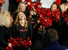 Utah cheerleaders have fun during a break of the GameDay show early Saturday mo