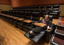Rachel Lueras, national marketing manager of Regal Entertainment Group, demonstrates the recl