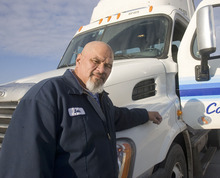 Patea's daily route takes him from Salt Lake City to Wamsutter, Wyo., where he meets a driver from Con-way's terminal in Denver, switches trailers, and heads back home. It is a round trip of more than 500 miles.
