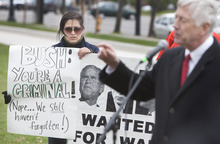 The "Rally for Accountability" was organized by former Mayor Rocky Anderson, who staged much larger protests during Bush's previous visits to the Beehive State. Despite both men being out of office, the message was far from muted.