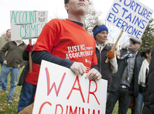 A youth activist, who took the microphone last, said it is important to educate young people not to be complicit. Despite signs that often read, "The America I know doesn't torture," Molly Robbins said, "the America that today's youth knows does torture."
