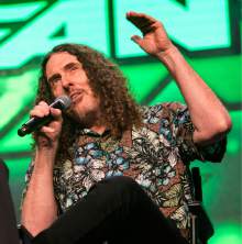 With Lee gone, the first major celebrity to be greeted by loud cheers in the Salt Palace's Grand Ballroom was comedy rock star "Weird Al" Yankovic, who happily talked about his career parodying pop hits and writing his own music.
