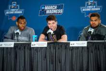 Hall has appeared in two games this season, so he's far from the star. But his personality has shined through in the last week as he's appeared more frequently as an interview, grilling teammates with tough questions. He did a bit Friday afternoon with fellow walk-on Tino Malnati, asking him what bench celebrations he had in store for Saturday's second-round game against Gonzaga.