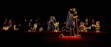 At first, many of the couple's holiday creations came from picture books. They included animals, Santa, a Nativity, iconic Utah scenes and characters and Christmas scenes that use computerized boxes to provide moving lighted characters. They eventually hired artist Kurt Moulton, who comes up with drawings after consulting with the couple. Sonny then fabricates the steel and uses rope lights to bring Moulton's drawings to life.