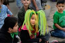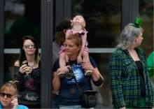 A young girl seems to enjoy the 39th annual St. Patrick's Parade as it makes it's way through the Gateway shopping center, Saturday, March 18, 2017.